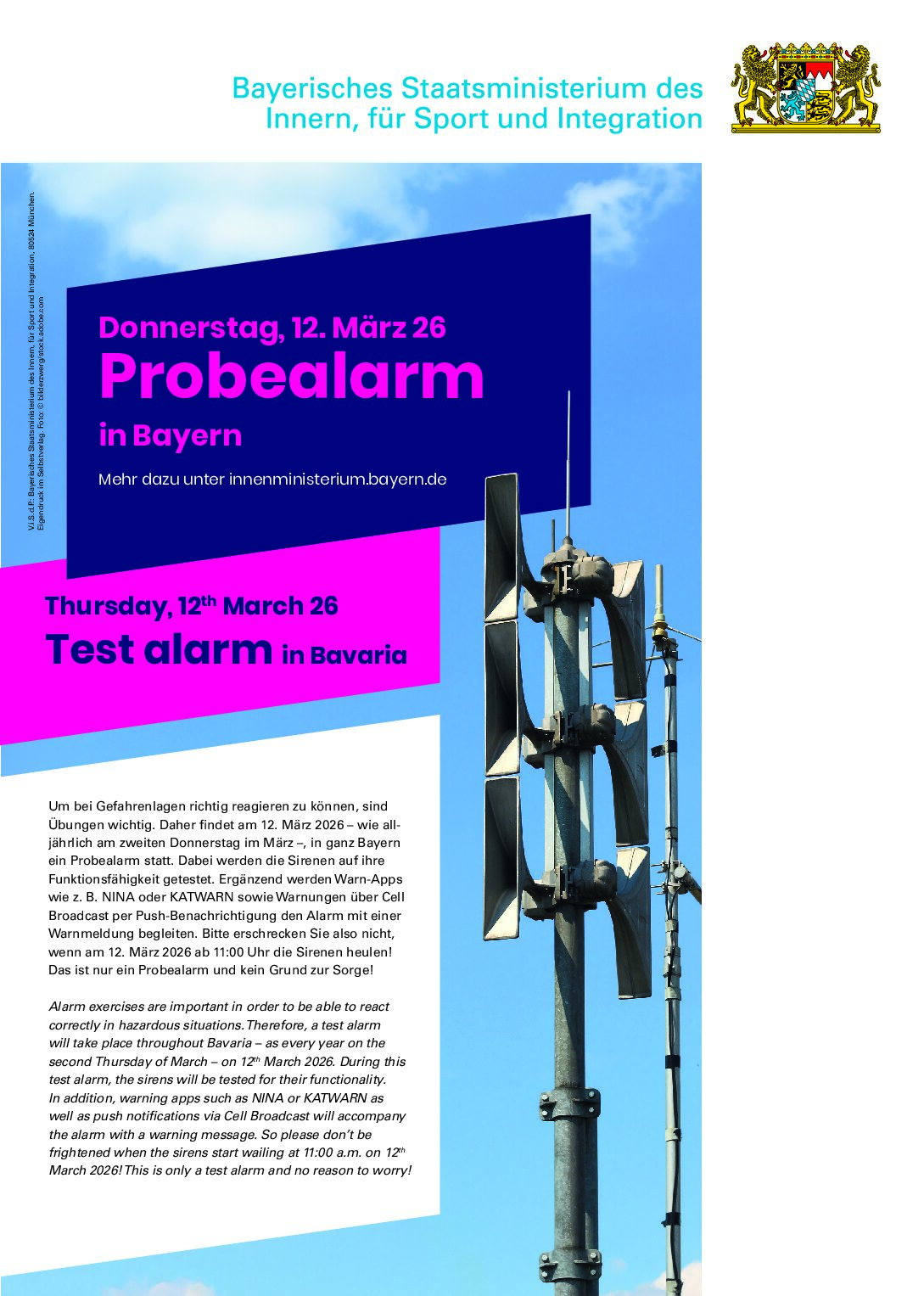 Datum März 12 2026 Uhrzeit 11:00 Probealarm in Bayern Teile diese Veranstaltung + Zu Google Kalender hinzufügen + iCal / Outlook exportieren